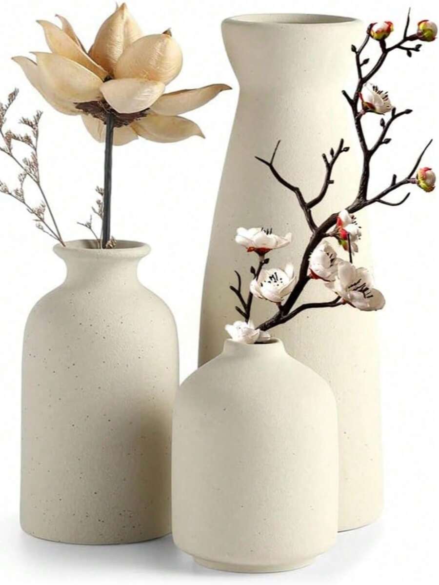 1/3pcs Beige Ceramic Vase Set - 1 Small Vases For Decoration, Modern Bohemian Farmhouse Home Decor Decorative Vases For Pampas Grass And Dried Flowers, Creative Shelf, Table, Bookshelf, Entryway,Fall Decor,Christmas Decorations,Halloween Decor, Back To School,