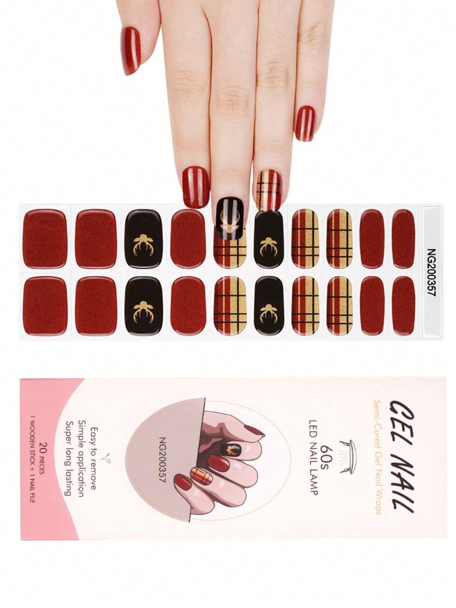 1 Box 20pcs Natural, Long-Lasting, Classic Red Deer Design UV Gel Nail Stickers, Easy To Apply And Remove