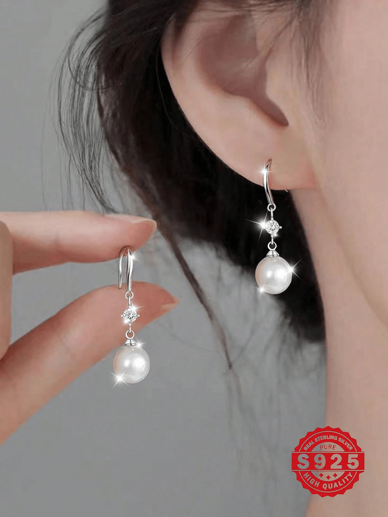 1 Pair Elegant S925 Sterling Silver White Pearl, Sparkling Cubic Zirconia, Golden & Silver Color Pendant Earrings, Vintage Fashion Style, Suitable For Girls, Party, Valentine's Gift, Daily Wear, Comes With A Exquisite Gift Box