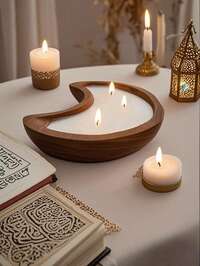 1pc Wooden Crescent Moon Shaped Aromatherapy Candle, Ramadan Special, Eid Gift, Can Be Used As Holiday Gifts, Decorative Gifts, Festival Candles, Birthday Gifts, Souvenirs And Small Gifts. Especially Suitable For Ramadan, Eid, Valentine's Day, Easter, Mother's Day, Tabletop Decor And Indoor Decoration. 1pc One 500g Black Snow Pearl Candle, With 45-50 Wick, Black DIY Candle Sand, Pearl Sand Wax With Wick, Pearl Wax, Suitable For Filling And Making, Weddings, Parties, Halloween, Christmas, Thanksgiving