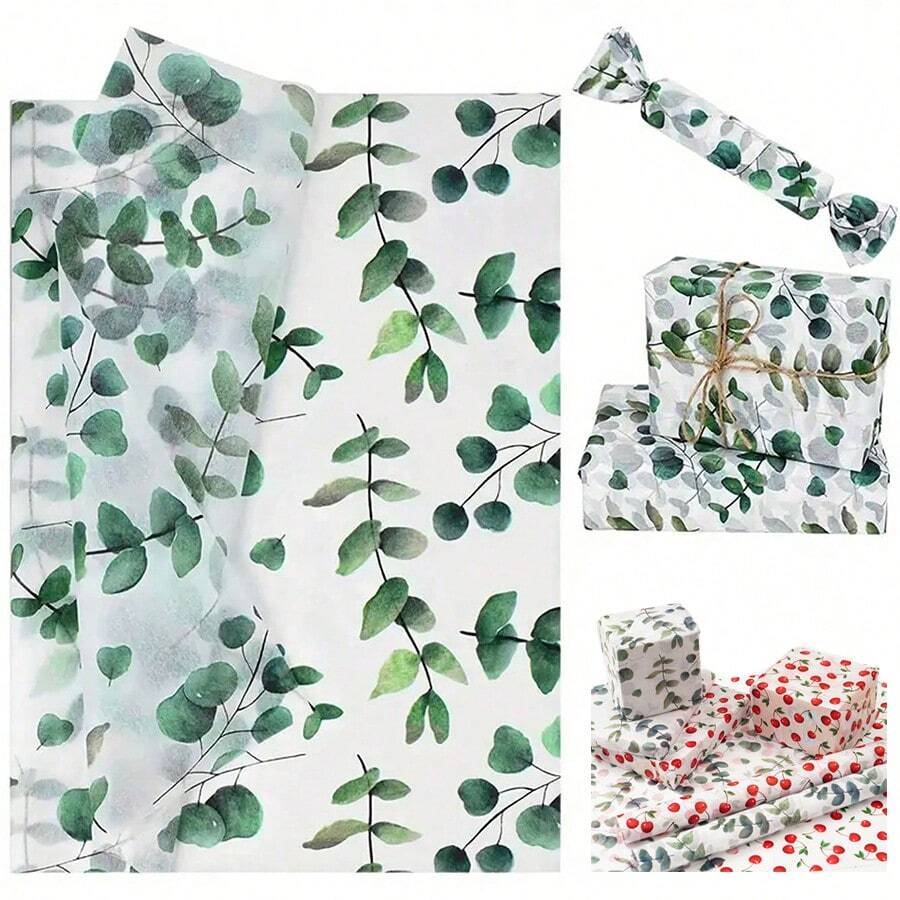10pcs Eucalyptus Gift Wrapping Tissues, Semi-Transparent Plant Design 13.8x19.7 Inch Floral Leaf Print Tissue Paper, Bulk Tissue Paper Gift Packaging For Birthday, Holiday, Wedding, DIY Crafts (Leaf) Valentine's Day