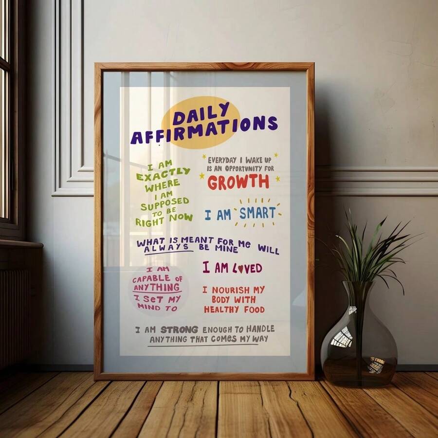1pc Inspiring Daily Affirmations Art Print - Colorful, Hand-Drawn Motivational Quotes On Canvas, Unframed - Ideal For Bedroom, Living Room, Dorm Decor & Office Relaxation - Perfect Gift, Motivational Wall Art Gifts Birthday Graduation