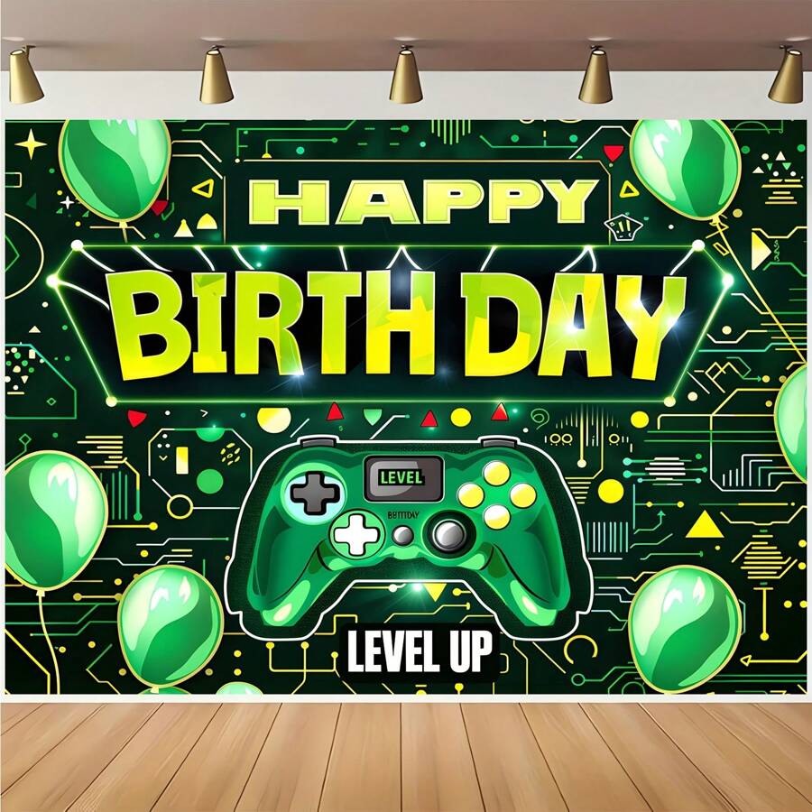1pc Polyester Happy Birthday Backdrop, Upgraded Gaming Theme Photography Background, Game Party Decor, Video Game Theme Birthday Party Backdrop, Cake Dessert Table Banner, Photo Prop, Indoor/Outdoor Party Decoration