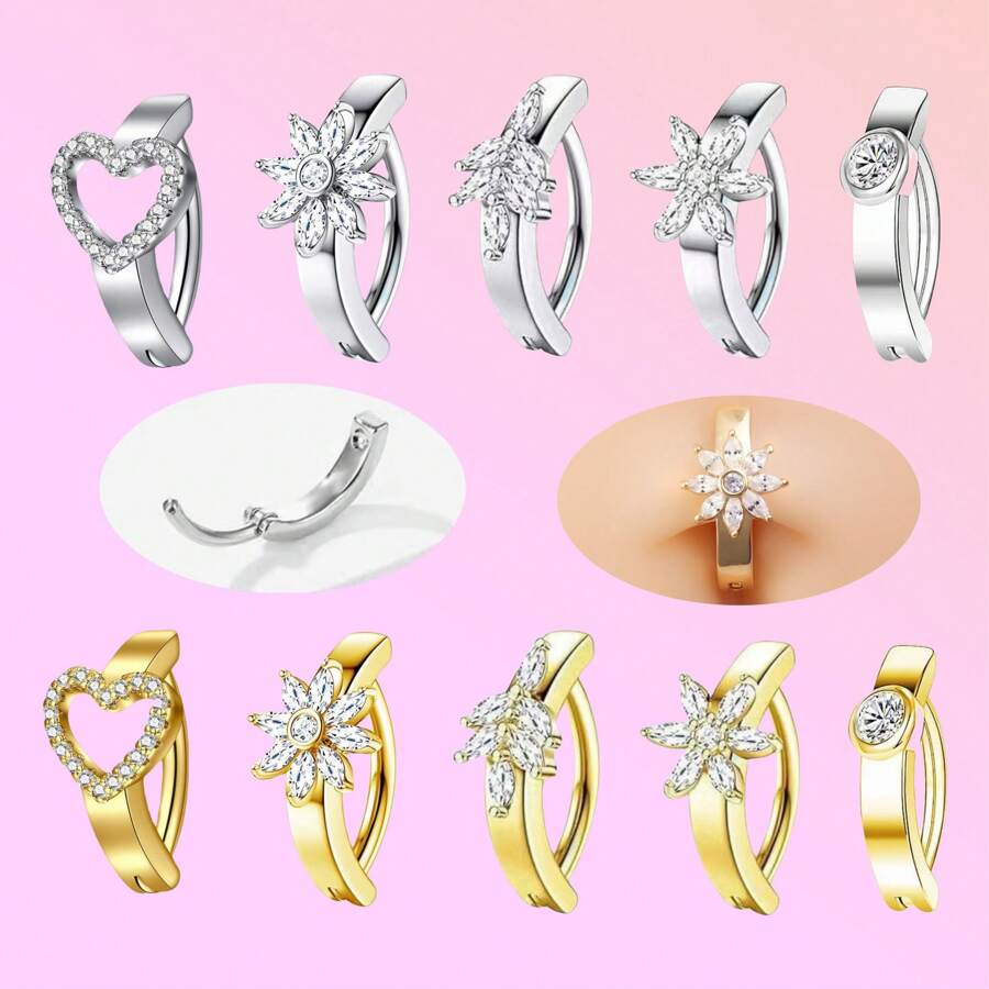 1pc Smooth Navel Piercing Jewelry, Rhinestone Zirconia Design, Hot Selling Belly Button Ring,