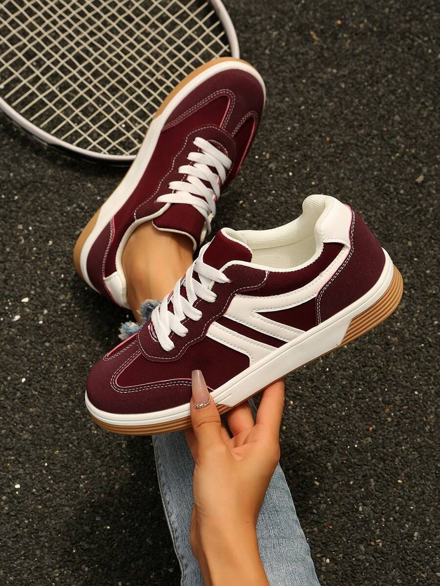 2025 Autumn Women's Color Block Patchwork Casual Sneakers, Fashionable And Versatile Flat Trainers, Suitable For Walking, Daily Commute Wear, Student Lace-Up Skate Shoes