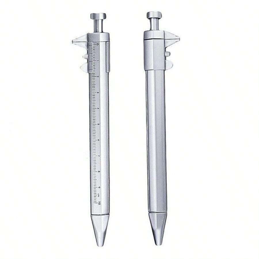 2pcs Multifunctional Creative Pointer Caliper Ballpoint Pen, 0-100mm Ballpoint Pen For Stationery Measurement