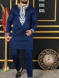 Men's White Dashiki 2 Pieces Set, Casual & Minimalist Design, Unique Collar, Tailored Fit, Long Sleeve Shirt & Elastic Waist Pants, African Fashion Outfit, Streetwear, Suitable For Casual, Party, Date, Wedding, Cultural Events 2pcs/Set, 2025 New Men's Blue Dashiki, Contrast Plaid Print Design, Mandarin Collar, Long Sleeve, Pockets, Elastic Waist Pants, African Clothing, Men's Casual Shirt & Pants 2-Piece Set, Streetwear, Party, Date, Wedding, Daily Wear, Cultural Events, Traditional Ceremonies 2pcs White Dashiki Shirt And Pants Set, Geometric Line Embroidery, Long Sleeve, Round Neck, Elastic Waist Pants, African Fashion, Men's Matching Sets, Casual & Elegant Style For Business, Party, Date, Wedding, Daily Wear, Cultural Events 2pcs/Set, 2025 New Men's Dashiki, Exquisite Golden Embroidery, Classic Black & Gold Contrast, Elegant Style, Long Sleeve, Round Neck, Button-Up, Elastic Waist Pants, African Clothing, Men's Casual Shirt & Pants 2-Piece Set, Streetwear, Party, Date, Wedding, Daily Wear, Cultural Events, Traditional Ceremonies 1set Men's Deep Blue Dashiki Set, Embroidered Collar & Cuffs, Long Sleeve, Elastic Waist Pants, African Attire, Men's Casual Shirt & Trousers 2Pcs Suit, New Style For All Seasons, Wedding, Party, Date, Daily Wear 2pcs/Set New Men's White Dashiki Shirt, Vintage Palace Style, Golden Floral Embroidery, Mandarin Collar, Long Sleeve, Pockets, Elastic Waist Pants, African Clothing, Men's Casual Shirt & Pants Set, Suitable For Parties, Dates, Weddings, Daily Wear, Cultural Events, Traditional Ceremonies & Celebrations