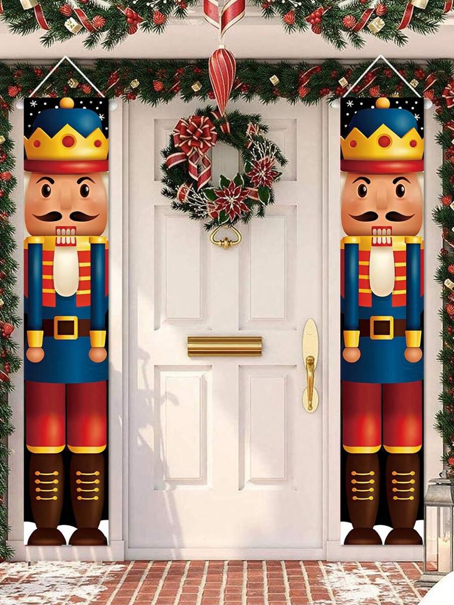 2pcs/Set New Merry Christmas Designs Door Curtains, Banner Couplets Perfect For Decorating Family Christmas Party, Christmas 2025 New Year Party Gift, Christmas Christmas Room Wall Background Decoration, Christmas