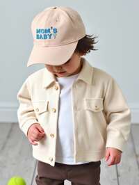 SHEIN Playful Pals Baby Boy Button Flap Collar Long Sleeve Shirt Jacket, Suitable For School, Casual, Holiday, Sports, Home Wear, Autumn Season, 6M-3T, Apparel, Jacket, Top Spring Jacket Fall Winter Corduroy Jacket