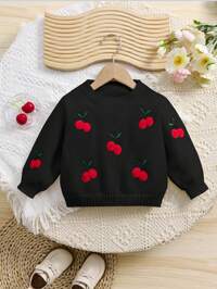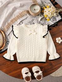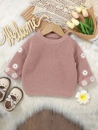Vintaside KidsSHEIN Vintaside Kids Baby Girl Embroidered Pink Pullover Sweater, Suitable For Spring/Autumn Wear, Can Be Used As Underlayer In Harsh Winters. Delicate Bow Embroidery Adds Adorable And Playful Charm. Suitable For Family Gatherings, Halloween, New Year, Thanksgiving, Christmas, Easter, National Day, Parties, New Year's Eve #2 Bestseller