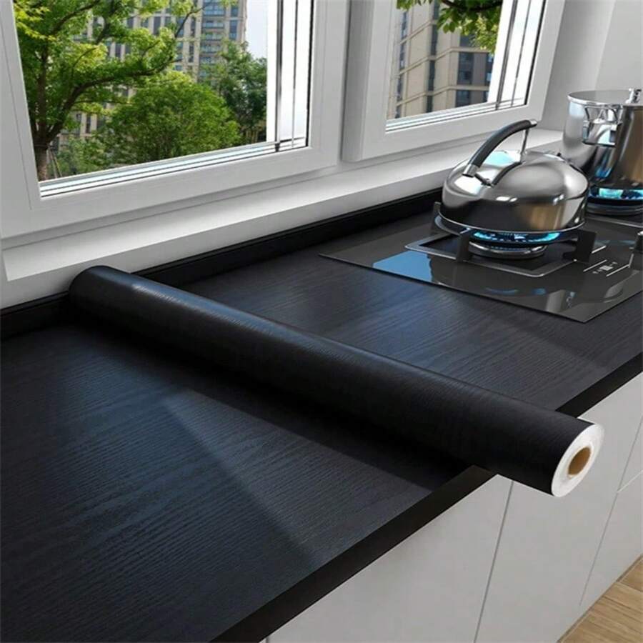Black Wood Grain Vinyl Contact Paper Self-Adhesive Removable Wallpaper-Waterproof, Mildew-Proof, Suitable For Countertops, Cabinets, Drawers, Table Covers–Easy To DIY Stickers