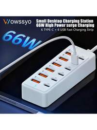 WOWSSYO 12-In-1 66W Fast Charging Station, 6 USB Ports + 6 Type-C PD Fast Charging Ports Power Hub, Fast Charging Type-C Multi-Function Plug/Multi-Output Outlet, USB Hub, USB Adapter, USB-C Hub, USB Hub/Multi-Port Hub, Compatible With Laptops, Phones, Tablets, Game Consoles And Other Devices 1pc Nylon Braided Fast Charging Data Cable, Supports Fast Charging And Data Transfer, Compatible With IPhone 13/12/11/XR/8/7/6, IPad, Laptop Series, Including 14 Pro Max, 14 Pro, 14 Plus, 13 Pro Max, 13 Pro, 13, 12 Pro, 12, 11, XS, XR, 8 Plus, 8, 7, 6, 5, SE, Compatible With Lightning Chargers, MFi Certified #7 Bestseller