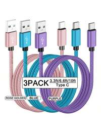 3-Pack USB-C Fast Charging Cables [3.3/6.6/10 Ft] USB-A To C Nylon Braided Charging Cords, C-Type Data Sync Cables Compatible With Samsung Galaxy A14 5G A13 A54 A53 A23 A24 A03s S23 S22 Ultra S21 S20, Compatible With IPhone 16, 16 Pro Max, 15, 15 Plus, 15 Pro, 15 Pro Max, Redmi, OnePlus And Android Phones, Compatible With Type-C Chargers #1 Bestseller