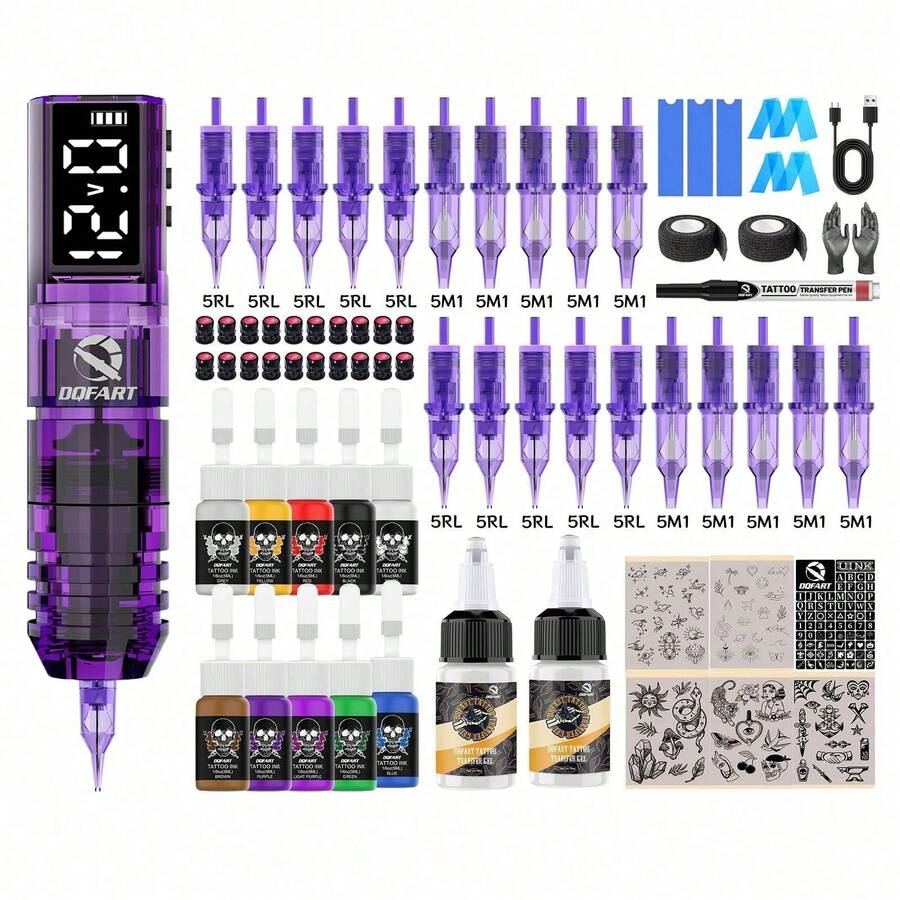 DQFART Complete Wireless Tattoo Machine Kit, All-In-One Tattoo Machine Set With 1600mAh Power, Digital Display, Tattoo Pen Kit, Suitable For Beginners, Includes Tattoo Needles, Tattoo Ink, Tattoo Stencils And Various Tattoo Supplies