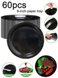 60pcs Black 9-Inch Paper Tray, Disposable Paper Tray, Dining Plate, Party Plate, Suitable For Parties, Birthdays, Weddings, Holidays, Picnics, Travel Sets, Home Decoration, Holiday Supplies, Kitchen Supplies, Restaurant Decoration, Disposable Kitchenware, Cooking Utensils #4 Bestseller