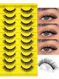 10 Pairs Natural False Eyelashes | Cat Eye Lashes, Natural Look, Fluffy & Lightweight, 3D Faux Mink Effect, Beginner Friendly, Slouchy Set, Thick & Soft, Reusable, Suitable For Everyday, Dates, Parties, Valentine's Day, Weddings, Cosplay #4 Bestseller