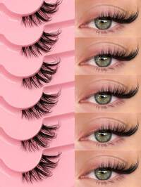 5 Pairs Of Natural Half Eye False Eyelashes, 3-5-9mm Mixed Length, Natural Cat Eye Eyelashes Makeup Tools Extended Fluffy Imitation Mink Eyelashes Transparent Strip Natural Long Cat Eye Eyelashes 3D Fluffy False Eyelashes Mini Cute Super Short Half Eyelashes, Suitable For Role Playing, European And American Style Extended False Eyelashes, Thin And Transparent Stems, Extended Ends, Natural Curling, Reusable, Very Suitable For Girls With Small Eyes, Suitable For Women's Daily Dating, Simple And Convenient Operation, Suitable For Dating Parties And Other Occasions, False Eyelashes, Natural Enlarged Double Eyelashes, Waterproof And Sweat-Proof False Eyelashes Strip Lashes,Lashes,Eyelashes,Fake Lashes #3 Bestseller