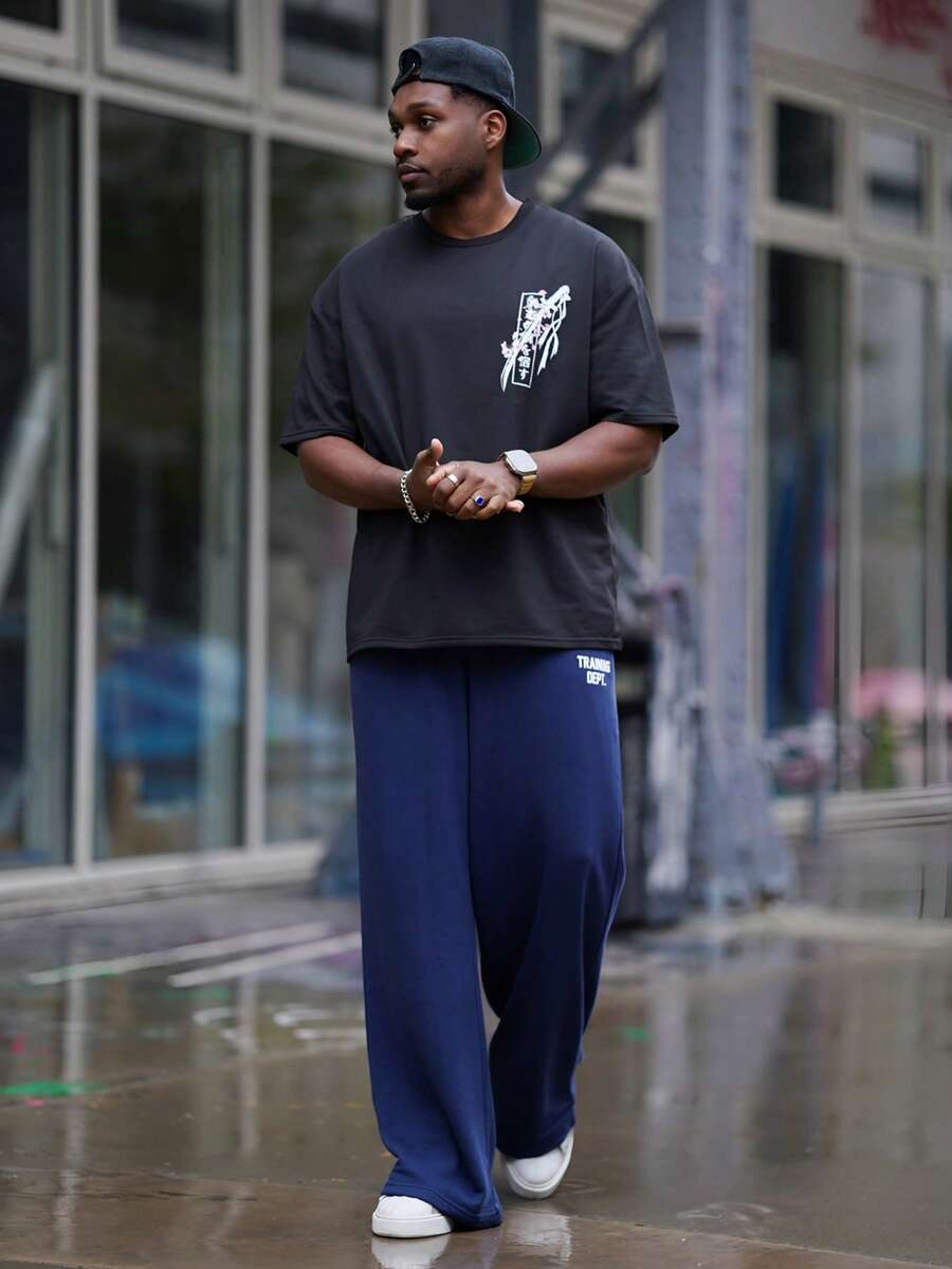 Heavens Edit Men's Casual Sword & Cherry Blossom Graphic Print Loose Fit Round Neck T-Shirt, Black