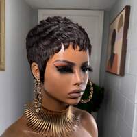 Parochňa Pixie strih pre ženy, krátke parochne z ľudských vlasov pre černošky, vrstvená 4/60 farebná parochňa, Pixie parochne s ofinou, pravé ľudské vlasy, bezlepková parochňa, žiadna čipka vpredu, strih z ľudských vlasov, krátka parochňa, parochňa Get Up And Go, darček z lásky, Vianoce, denné použitie #1 Najlepšie predávané