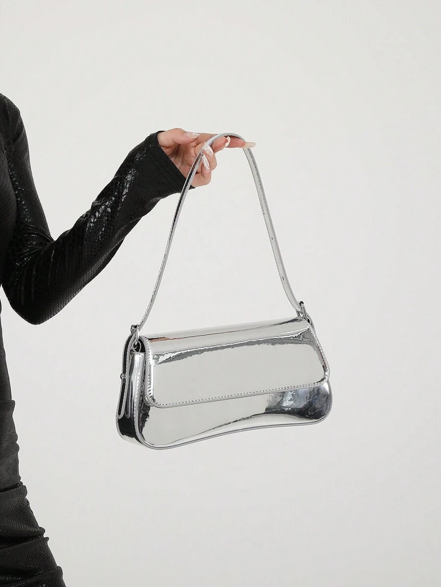 In 2024, The New Fashion Classic Joker Solid Color Pu Waterproof Fabric Mirror Solid Color Spice Girl Style Motorcycle Wind Underarm Baguette Shoulder Bag Is Suitable For Going Shopping And Attending Parties.