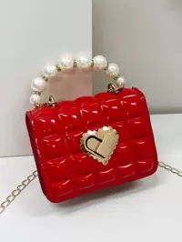 Mini Faux Pearl Decor Quilted Chain Crossbody Bag, Quilted Square Bag With Faux Pearl Top Handle, Chain Shoulder Purse, Gift, Holiday, Vacation, Perfect Fit, Perfect For Shopping, Traveling, Fashionable, Simple, Soft Leather Tote Handbags Mini Heart Decor Handbags, Lattice Patterned Square Purse, Fashion Chain Crossbody Bag