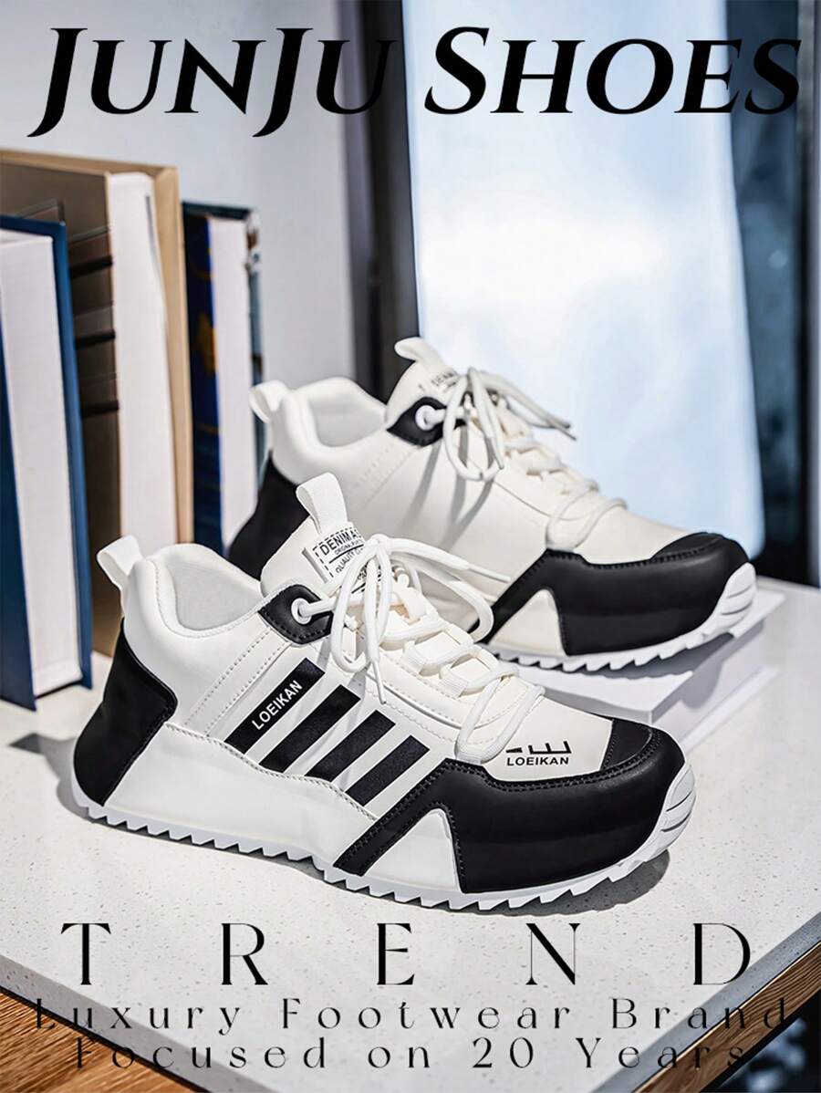 Large Size Four Season Spring/Summer Casual Sports Shoes, Wear-Resistant And Fashionable, High Cut, Thick Sole, High Height, Black And White Men's Shoes