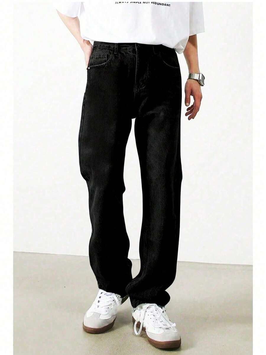 Men Cotton Bleach Wash Straight Leg Jeans, Plain Long Washed Baggy Light Blue Cargo Jeans, For Husband, Boyfriend Gifts
