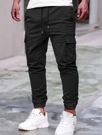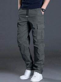 GSUE1pc Plus Size Men's Multi-Pocket Solid Color Cargo Pants, Casual Loose Lightweight Trousers For Spring/Autumn, Beach/Vacation, Daily Commute, Workout, Outdoor, Streetstyle, Fitness, Jogging, Hiking, Fall #1 Bestseller