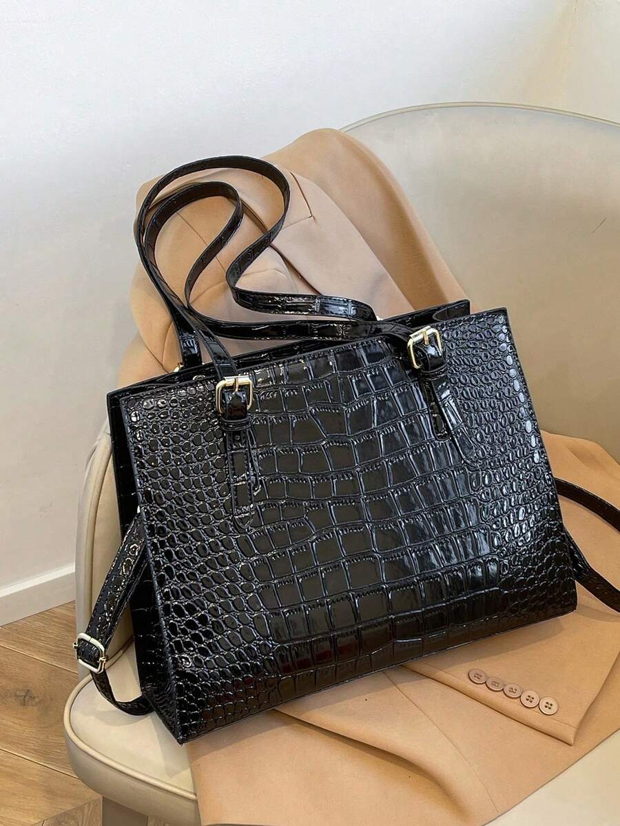 New Crocodile Embossed Handbag With Accessories, PU Material