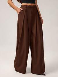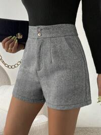 Women's Casual Solid Color Wrap Shorts,Commuter Style, Asymmetric Layered Shorts - Collegiate Style, 70s, Casual, Comfortable, Commute, Old Money Aesthetic, Suitable For School, Teaching, And Office Wear Spring/Summer/Autumn