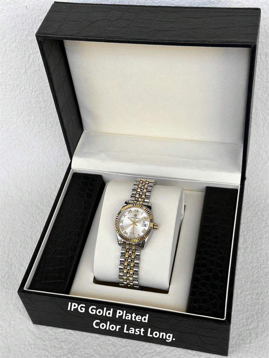 Pablo Raez 1pc 18K Gold Lady Watch Vintage Women Classical Luxury Wristwatch For Ladies Original Charming Dress High Quality Summer Beach Accessories Party Watch Fashionable Stainless Steel Bracelets Chain Round Elegant Gear Shape Case Diamonds