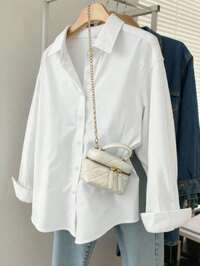 Dazy KidsSHEIN Female Teenagers' Casual Fashion Lapel Shirt Button Placket Practical Version Loose, Comfortable, Soft, Practical And Versatile, Suitable For Autumn, Spring And Summer, Suitable For Daily Wear, Commuting, Outdoor Play, Sports, School, Streetwear, Parties And Photography #8 Bestseller