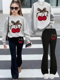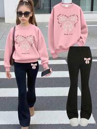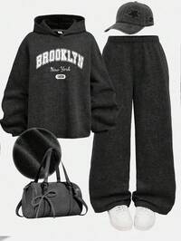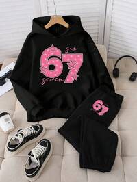 Girlism2pcs/Set Teens Girls Casual Loose Thick Soft Graphic Sweatshirt And Leggings Set, Black & White Mini Logo Pattern, Suitable For Autumn & Winter Outfits, Easy Comfort, Autumn & Winter Layers, Stylish Teen Girl, Casual Wear, Girls Graphic Clothes, Fall & Winter Clothes, Chic Autumn, Fall New Style #6 Bestseller