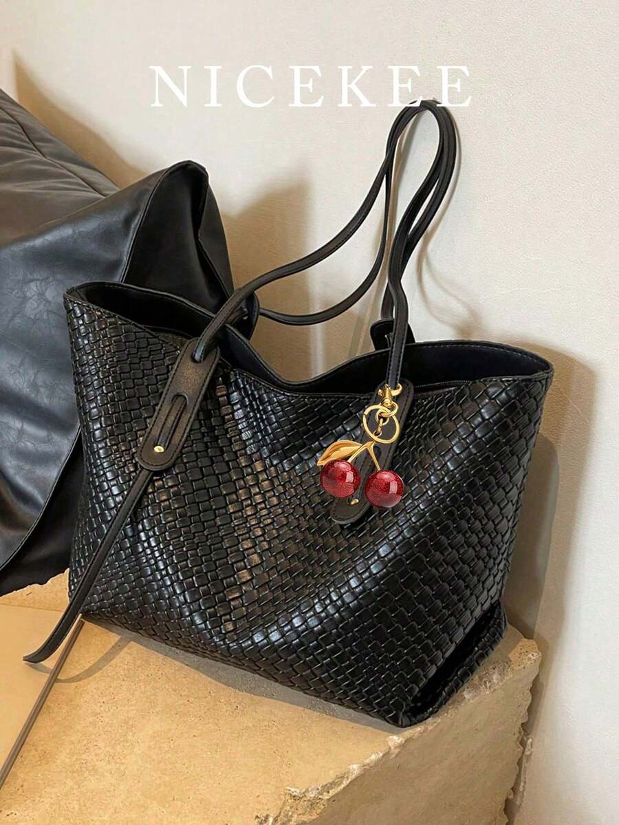 Women's Multifunctional Solid Color Woven Pattern PU Leather Handbag, Minimalist Large Capacity Top Handle Shoulder Bag, Casual Lightweight Commuter Tote Bag, Suitable For Daily Office, Fashionable Waterproof Square Outdoor Travel Shopping Crossbody Bag