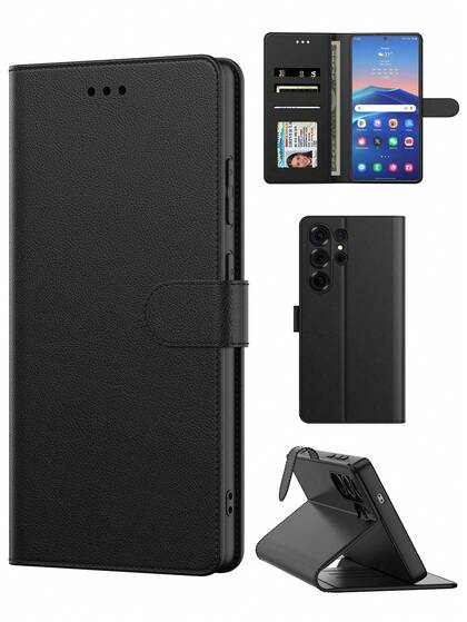 Black Multifunctional Wallet Style Phone Case, PU Material Android Phone Case, Waterproof Shockproof Anti-Fall Anti-Scratch Full Coverage
