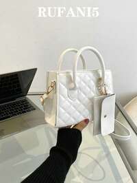 Quilted Pattern Square Bag With Purse Argyle Handbags With Coin Purse, Solid Color Crossbody Bag, Women's Small Satchel Bag , Women Bag With Dime Bag