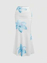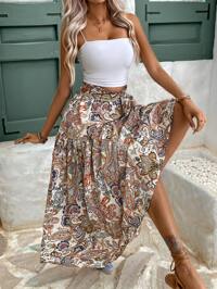 Travachic Floral Print Women's Skirt, Casual Holiday Style,Spring&Summer For Women,Beachwear,Easter,Beach For Woman,Spring Break,Vacation Women,Concert Women,Rave Festival,Rave,BOHO,Music Festival,Tropical Vacation Woman,Tropical Vacation Woman,Baggy,Loose,Oversize