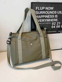 1pc Simple Versatile Casual Solid Color Large Zipper Big Capacity Shoulder Tote Bag For Women, Suitable For Shopping, Vacation, Work, Commuting, Fashion Shoulder Handbag With Top Handle And Zipper Closure, Waterproof Shoulder Bag, Dumpling Bag, Underarm Bag, Nylon Bag, Foldable Student Bag, Suitable For Travel, School And Office This Fashionable Large-Capacity Tote Bag For Women Is Made Of Leopard Print Canvas, Lightweight And Spacious, Suitable For School, Campus, Library, Shopping, Travel, Outdoor Activities, Picnics And Other Occasions. It Can Be Used As A Handbag, Shoulder Bag Or Tote Bag, And Is Also A Must-Have Item For Students In Campus And University. This Fashionable Large-Capacity Tote Bag Is The Ideal Choice For Women In Autumn And Winter, And Is The Perfect Match For The Fashionable Leopard Print Women's Wallet In Autumn And Winter. , Office #1 Bestseller