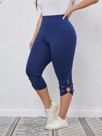 Women's Plus Size Black Leggings, European & American Casual Fashion Outdoor Sports Fitness Pants, Soft & Comfortable With High Elasticity, Suitable For Home, Yoga, Beach, Music Festival, Camping, Hiking, Cycling, Cropped #1 Bestseller