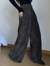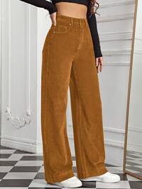 GlamineSHEIN Clasi New Women Corduroy Fabric Slant Pocket Pants With Zipper, Elastic Waist, Solid Color, Fashion, Young, Commuter, Casual, Versatile, Slimming, Elegant, Autumn/Winter Fall Cloth For Women