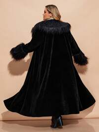 SHEIN CURVE+ Plus Drawstring Waist Dual Pocket Teddy Lined Hooded Coat, For Winter