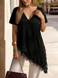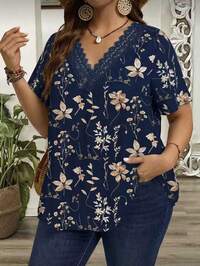 RefloraReflora Plus Size Elegant Lace Patchwork Chiffon Blouse,Everyday Wear Boho/Bohemian,Holiday,Resort /Vacation Style Summer Beach Wedding Guest Women Casual Summer Summer Outing Blouses,Summer Tops,Modesty Clothes Women,Floral,Shirts Women,Funny Shirts,Suitable For Everyday Elegant Wear,Vacation Outfits Woman,Summer Outfits For Women,Business Casual Woman,Going Out Tops Women ,Office Wear Women,Spring Outfits For Women,Festival ,Old Money, Short Sleeve Tops Women,Elegant Woman Clothing,Modesty Clothes Women,Casual Tops Women,Spring Break,St Patrick Day Shirt Black Top #6 Bestseller