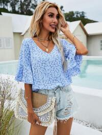 Breezaya Ditsy Floral Flounce Sleeve Blouse