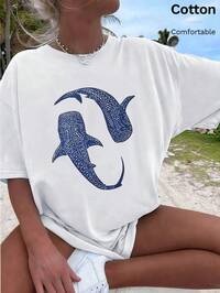 Ribbed Cotton Women's T-Shirt, Blue Whale Shark Print, College Style Spring Summer New Sports Women's, Draped Fashion Soft Breathable Women's White Short Sleeve Top Vacation, Camisetas Invierno Mujer, Noistamujer, Camiseta Oversize Mujer, Motif Mujer, Camiseta Manga Corta Mujer, Top Verano, K Pop Guerreras, Ropa Mujer, Verano Mujer, Jersey, Fiesta, Sudaderas De Mujer, Conjunto Mujer Invierno, Ropa Verano Mujer, Verano Mujer, Y2k, Mujer, Curve, Ropa Curvy Mujer, Sudadera Mujer Talla Grande, Friends, Curve, Vacation, Casual, Office/Lounge/Home/Outdoor Sports/Retro Style/Simple, Fun Design, Casual Tops Suitable For All Seasons, Valentine's Day Couple Short-Sleeved Shirts, Unisex Short-Sleeved Shirts, For Dates, Romantic Outings, Holiday Gifts, Tops, Deporte, Top Elegantes