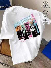 100% Cotton Women's T-Shirt, White Backstreet Boys Retro Pop-Themed Loose-Fit Pure Cotton Short-Sleeved T-Shirt. Spring/Summer Seasonal New Arrival Sportswear For Women, Fashionable Soft And Breathable Women's Short-Sleeved Top.