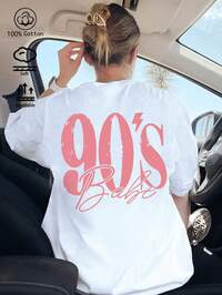 Pure Cotton Ladies' White T-Shirt, 90s Retro Print T-Shirt, Casual, New Spring/Summer Ladies' Sportswear, Fashionable Soft And Breathable Short-Sleeved Top