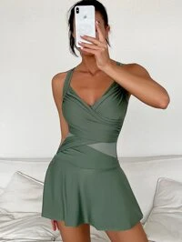 Swim Basics Summer Beach Mesh Insert Criss Cross One Piece Swimsuit