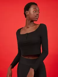 SHEIN EZwear Buttoned Front Rib-knit Crop Top
