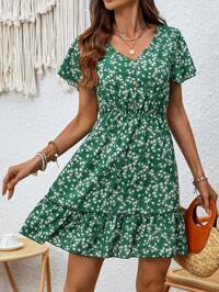 Breezaya Ditsy Floral Print V-Neck Ruffle Hem Dress Vacation Beach Outfits Women