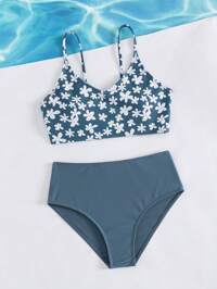 SHEIN Tween Girl' Ditsy Floral Swimwear Set, 2Pcs Cute Flower Pattern Swimwear Bikini For Spring/Summer, Stylish, Fashionable & Sweet Design, Suitable For Any Occasion